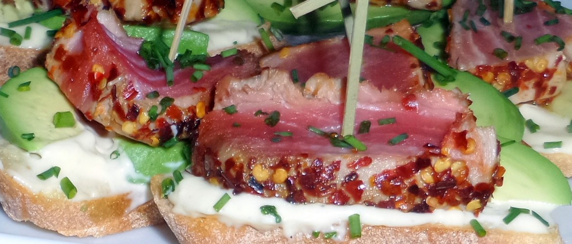 Ungefär hälften av rätterna brukar bli vegetariska, en fjärdedel fiskbaserade, och en fjärdedel kött. Majoriteten av rätterna serveras på bröd av olika slag. Vår kock Peter är själv allergisk mot nötter och stenfrukt och brukar undvika det i de flesta rätter, eller i alla fall göra så det är lätt att peta undan. Om någon i sällskapet är överkänslig mot något (eller helt enkelt inte gillar något) så rekommenderar vi att han eller hon löser det genom att hoppa över den pintxon och ta en extra av något annat i stället. Ju mer vi vet om sådant innan ni kommer desto mer kan vi göra för att anpassa rätterna, men vi kan inte lova att helt undvika en viss råvara i allt vi serverar.