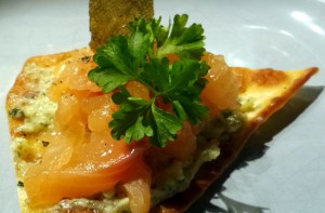 Klassiska svenska ingredienser som tunnbröd, röding och ramslök. Kombinerat till en pintxo med svensk sommarkänsla. Mmm…