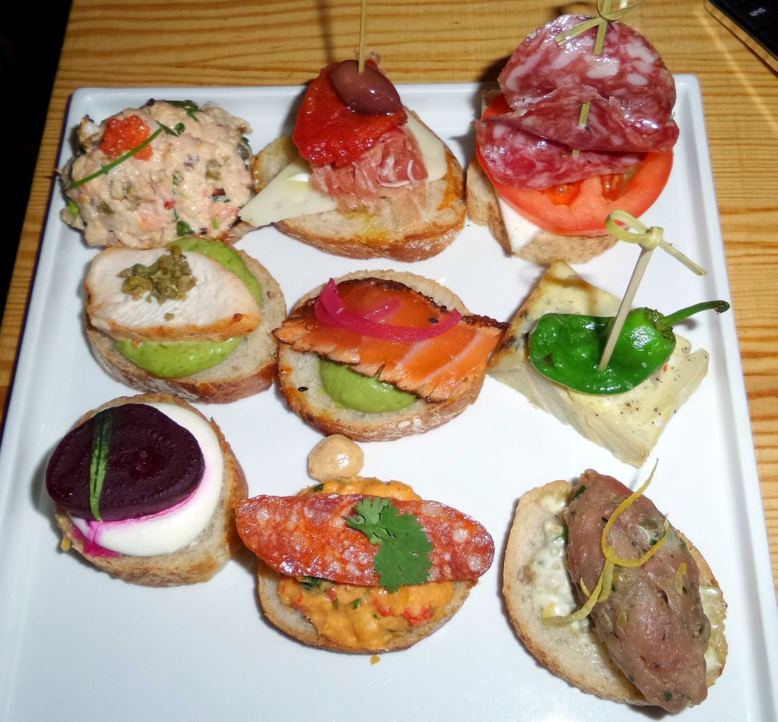 “Favoriten var havssalladen, men jämfört med San Sebastián var det inte alls lika bra toppar, kvaliteten är jämn och trygg!”, sade gänget, två unga män och en kvinna, vid bordet bredvid oss. “De flesta går nog inte hit för matens skull utan för att umgås med vänner, dricka och ha kul. Och det är alldeles för larmigt och för hög musik, åtminstone på fredagar.”